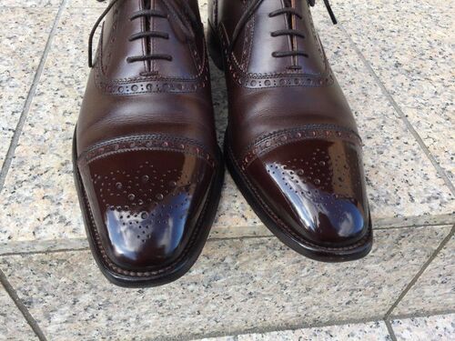 今回はスコッチグレイン50周年モデルの靴磨きをしました。 鏡面磨きにもチャレンジしていますがメダリオンがあると、 いつもより難しく感じました。 ところで、メダリオンってなんでついているんですかね? 気になったので今度、調べてみますね! この靴の過…